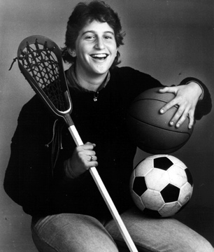 Shari Krasnoo was a standout in soccer (forward), basketball (guard), and lacrosse (second home) before graduating from Wayland High School in 1987. She earned DCL All-Star honors in soccer and basketball as well as being a three-time All-American, the state’s leading scorer as a senior and the scorer of an incredible 324 points in her career. Her lacrosse teams won three state championships.